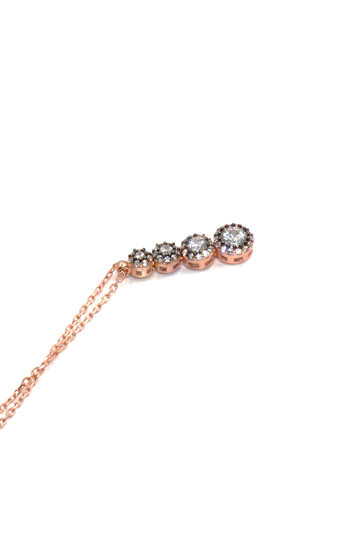925 Ayar Gümüş Elmas Model 4 Taş Kolye Rose