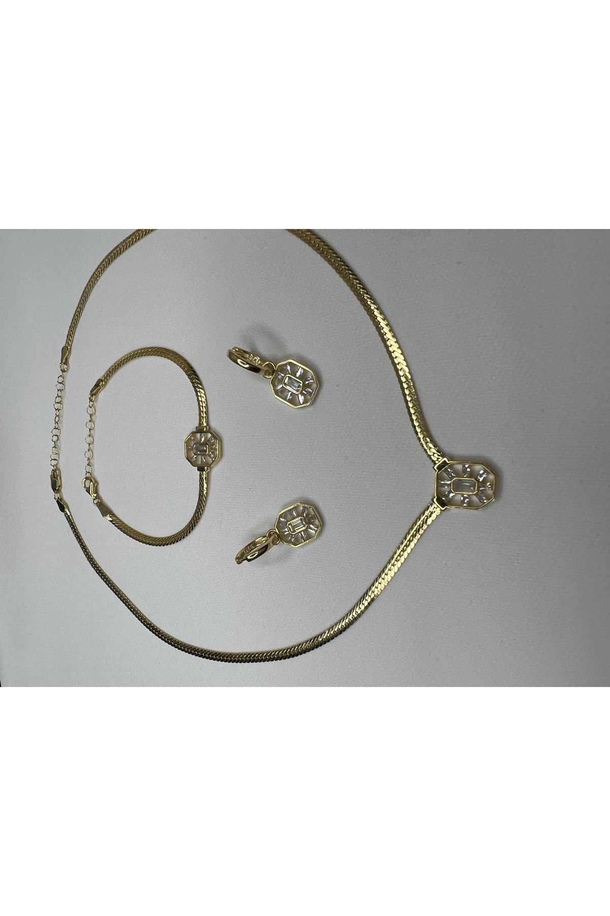 BALIKSIRTI GERDANLIK SET 925 AYAR GÜMÜŞ ÜZERİ 14 AYAR ALTIN KAPLAMADIR. ZİRKONYUM TAŞ DİZİMDİR.