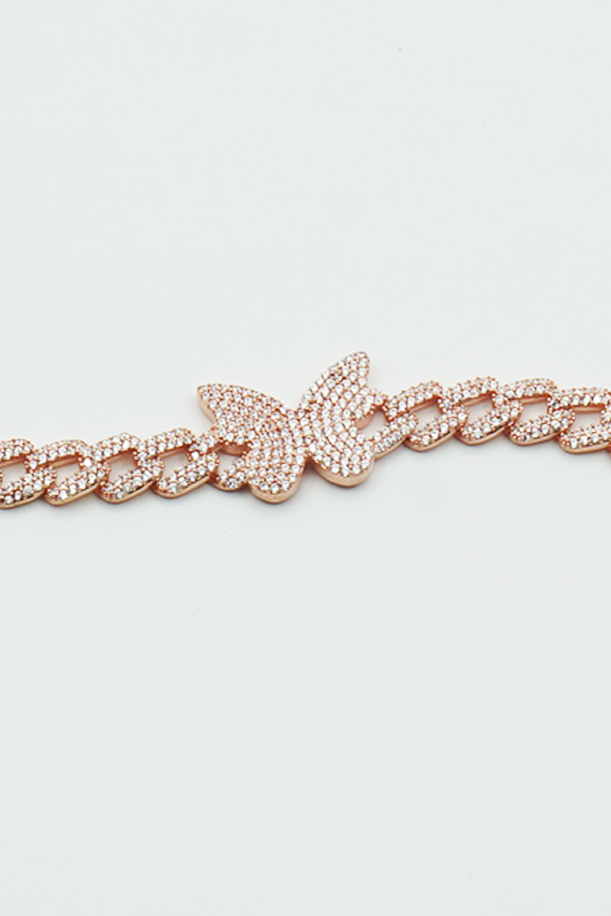 Gurmet Kelebek Model Taşlı Rose Bileklik