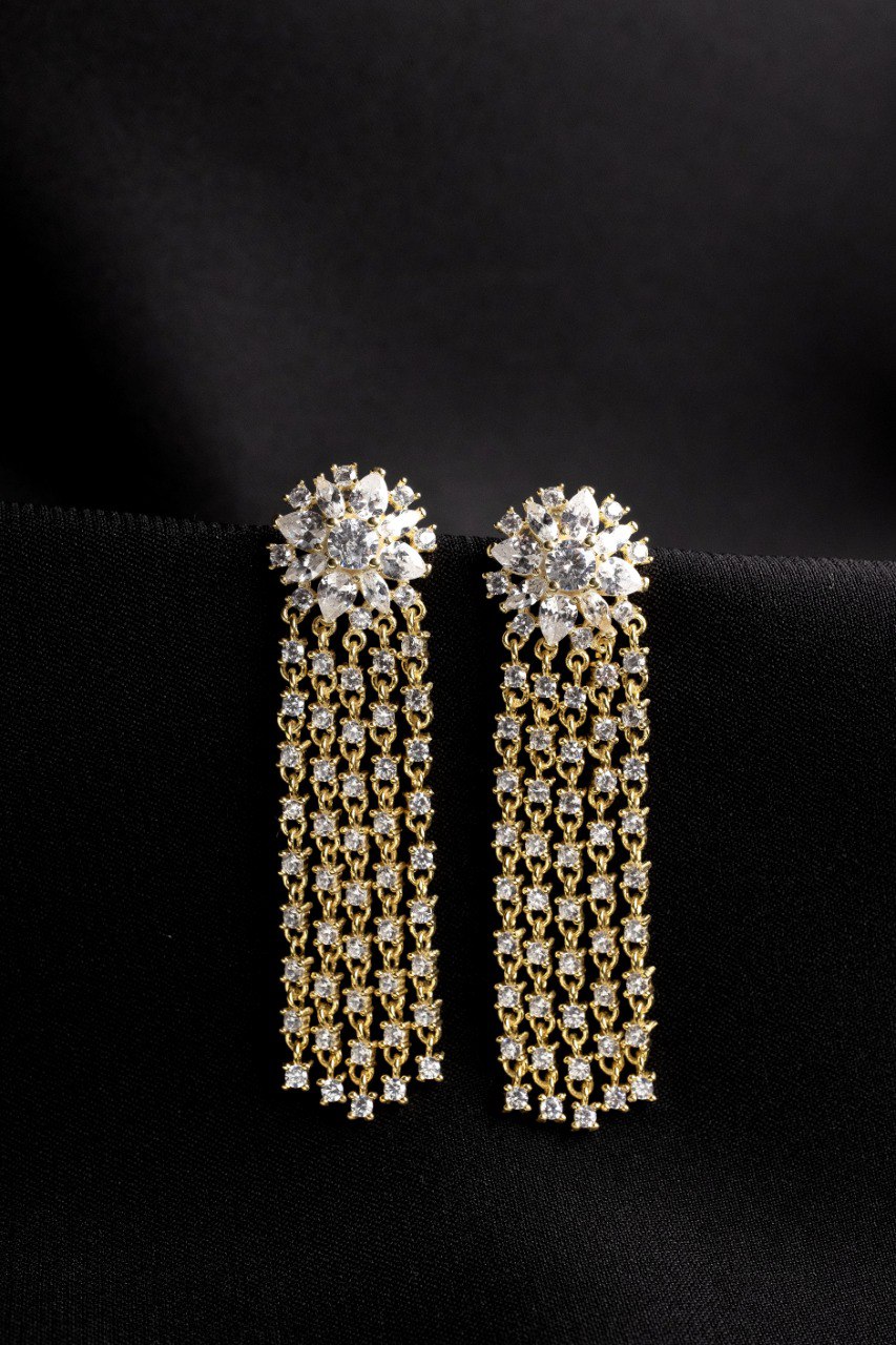 Tasarım Baget Taşlı Zincir Model Küpe Zamansız Parçalardan