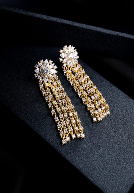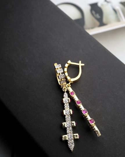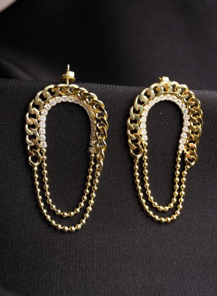 Tasarım Baget Taşlı Zincir Model Küpe Zamansız Parçalardan