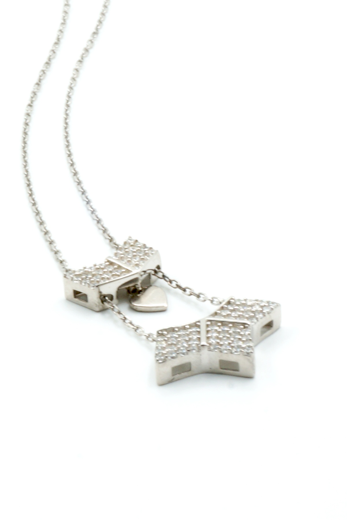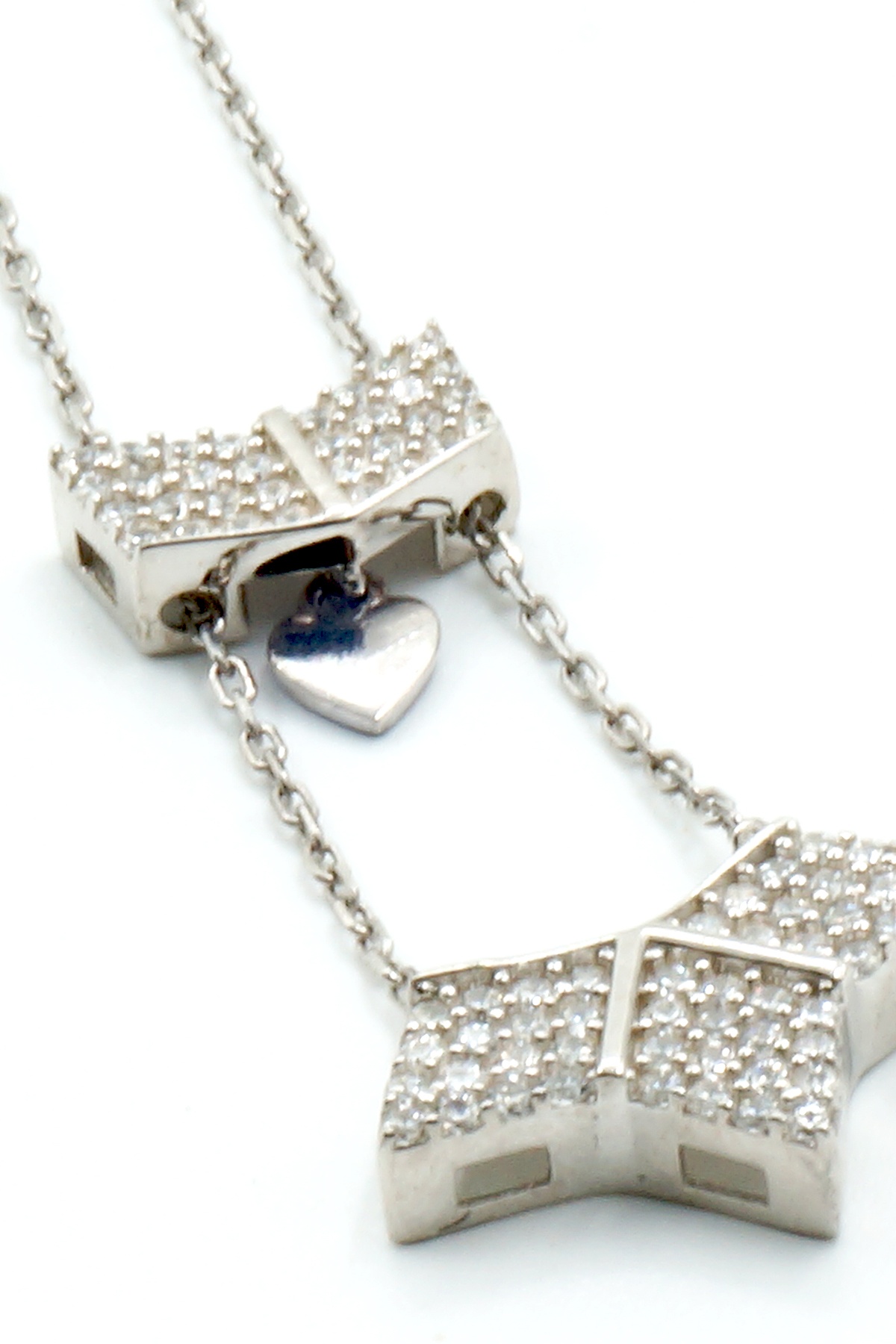 925 Ayar Gümüş Elmas Model 4 Taş Kolye Rose